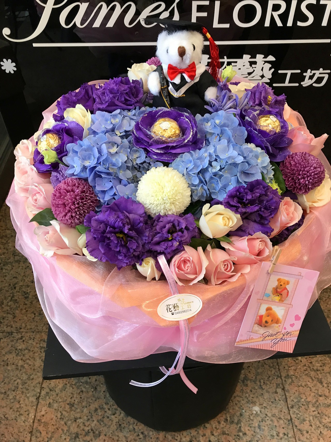 玫瑰桔梗圓型花束