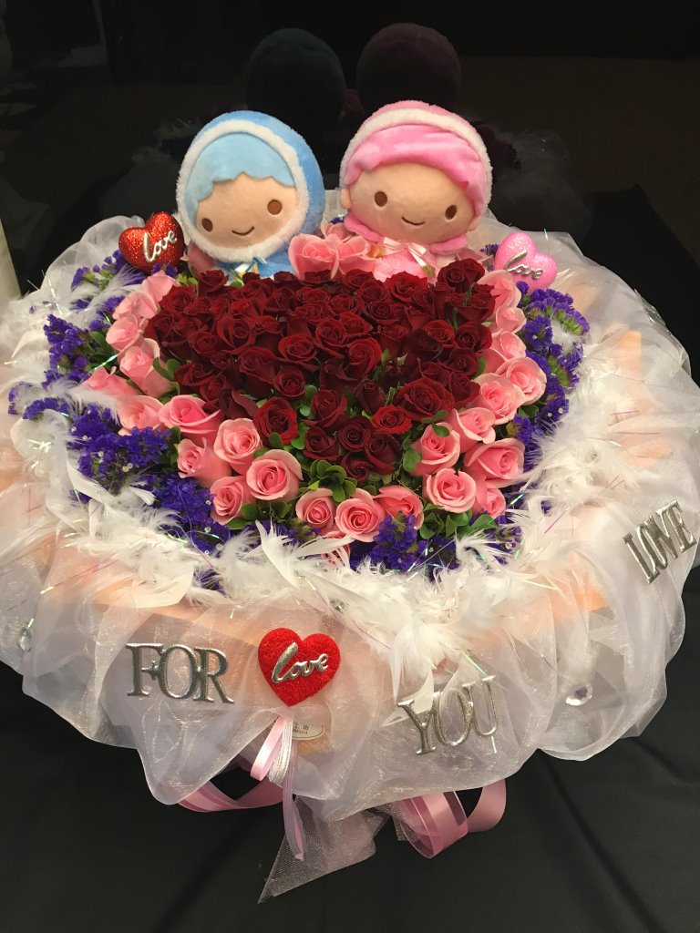 紅白雙色心型99朵圓型花束