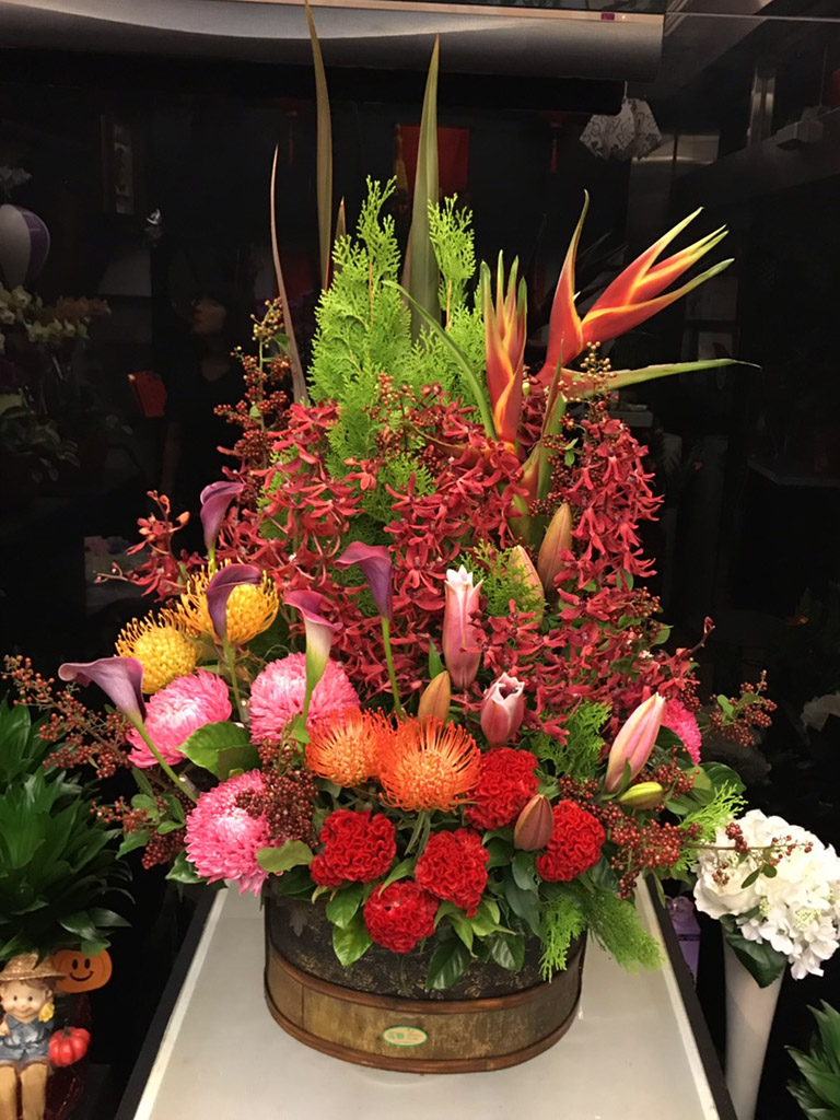 紅百合繡球桌上水平講桌盆