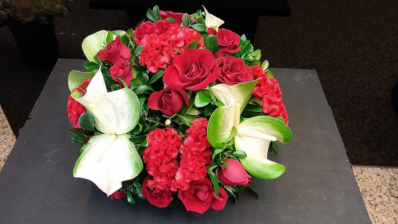 紅玫瑰康乃馨桌上盆花