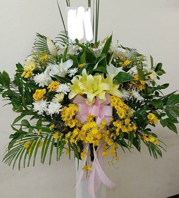 花材: 百合.白竹.太陽花.菊花.文心蘭.葉材