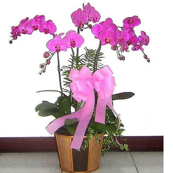《花材》紅花蝴蝶蘭5株.小品盆栽2盆.典雅木質花盆