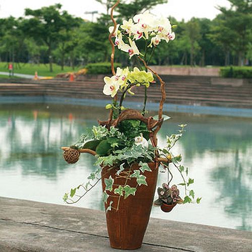 《花材》蝴蝶蘭3株、常春藤.嫣紅蔓.籐球。