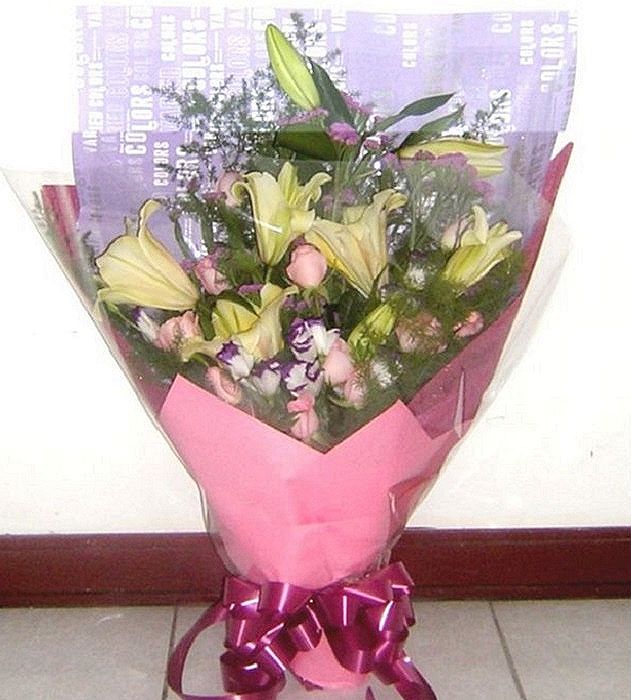 不變的愛百合玫瑰花束