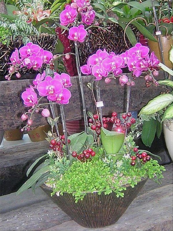 《花材》蝴蝶蘭5株.小品盆栽.陶瓷花器.裝飾品 (花器如遇缺貨,將以其它款式取代)。
