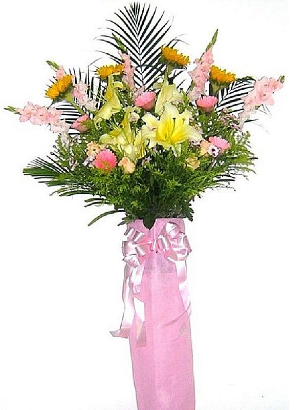《花材》劍蘭.百合.玫瑰.太陽花.向日葵.葉材.花架