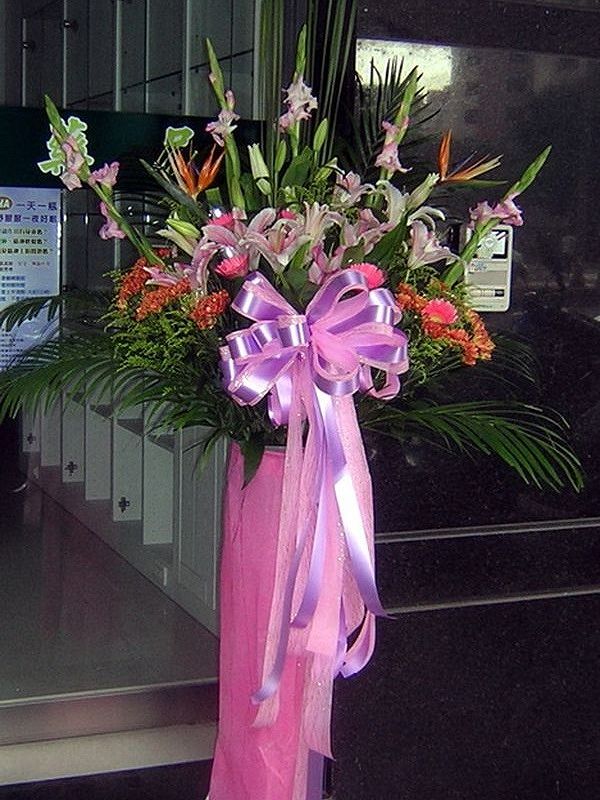 《花材》劍蘭.百合.太陽花.天堂鳥.小菊花.葉材