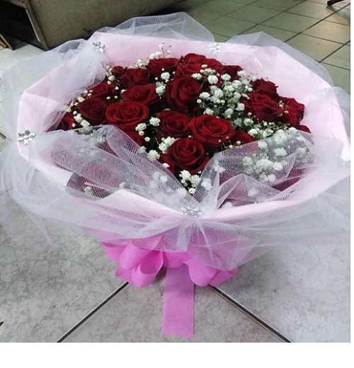 《花材》紅玫瑰21朵.滿天星.進口雪紗