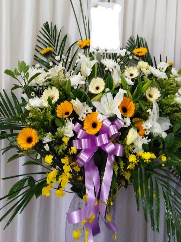 花材: 白百合.向日葵.太陽花.菊花.文心蘭.葉材