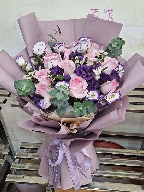 • 花材:白色滿天星、紫/粉玫瑰