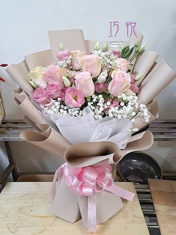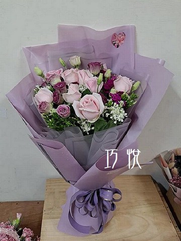 • 花材:粉紫玫瑰、滿天星