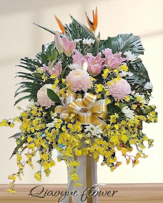 • 花材:牡丹菊、文心蘭、天堂鳥、火鶴、百合、葉材