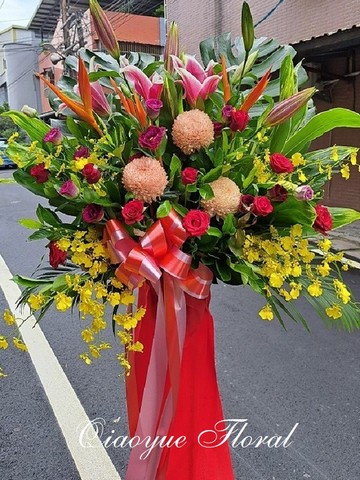 精選新鮮亮眼花材,層次豐富、配色大器,搭配高架設計,展現挺拔氣勢與祝賀誠意。