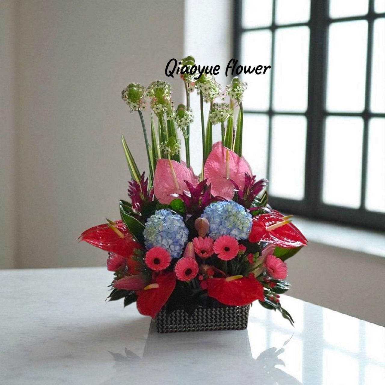 伯利恆、繡球、鳳梨花、火鶴、粉太陽、百合、康乃馨