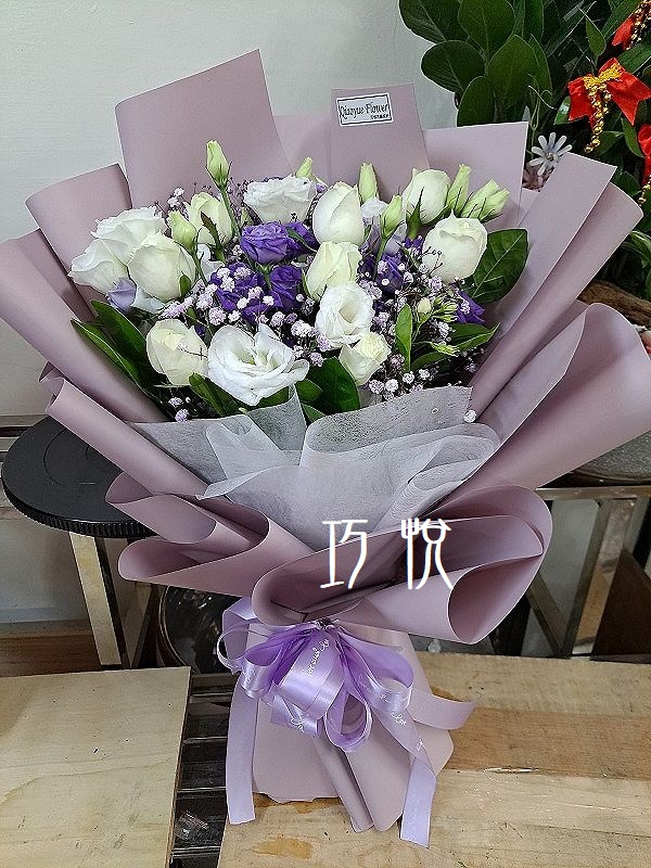 • 花材:白色滿天星、白玫瑰、紫桔梗