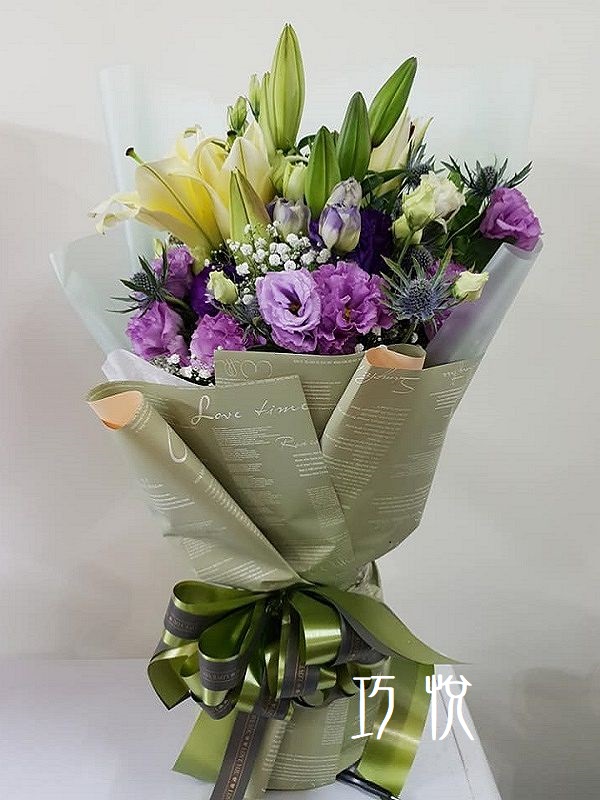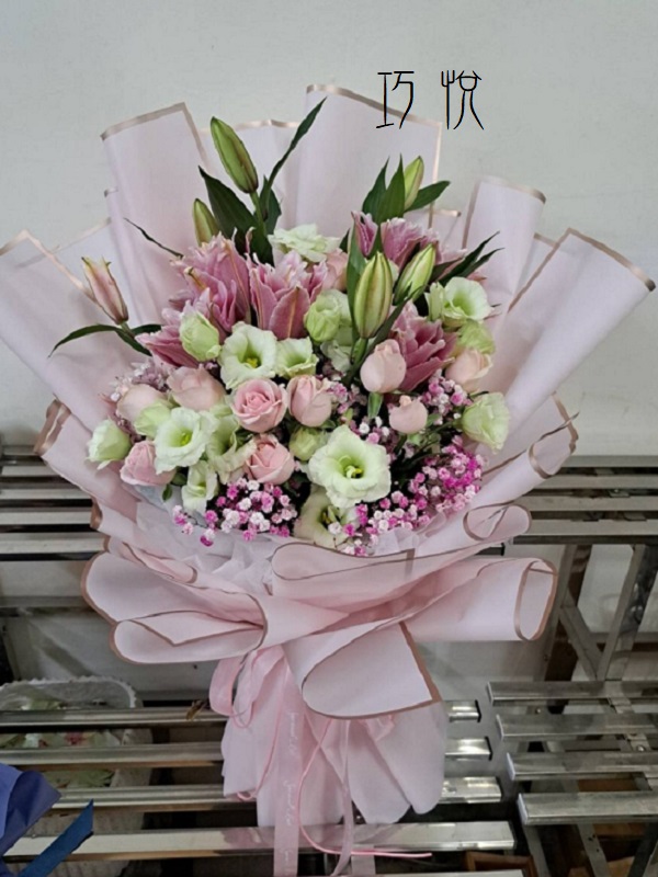 柔光系花束|粉色系百合與玫瑰搭配桔梗清新感