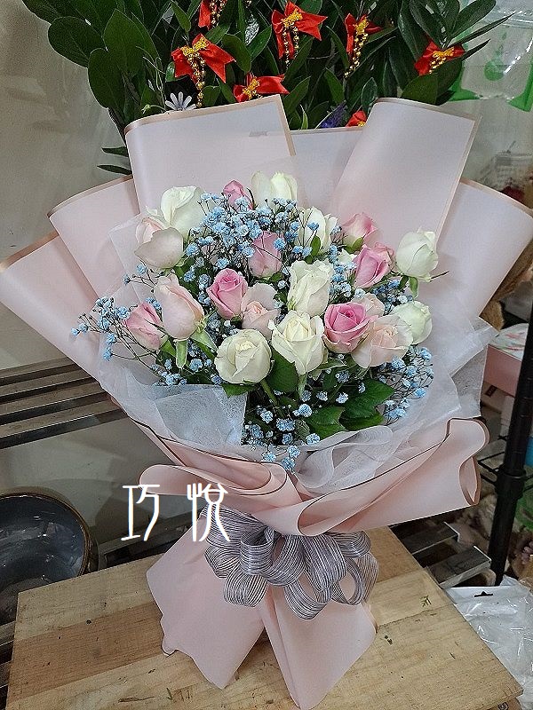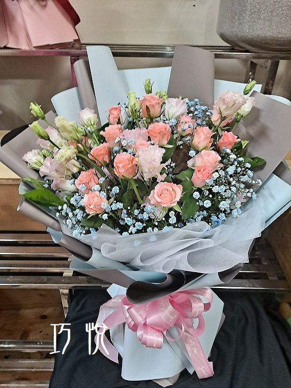 粉玫瑰藍滿天星花束|清新浪漫系人氣款
