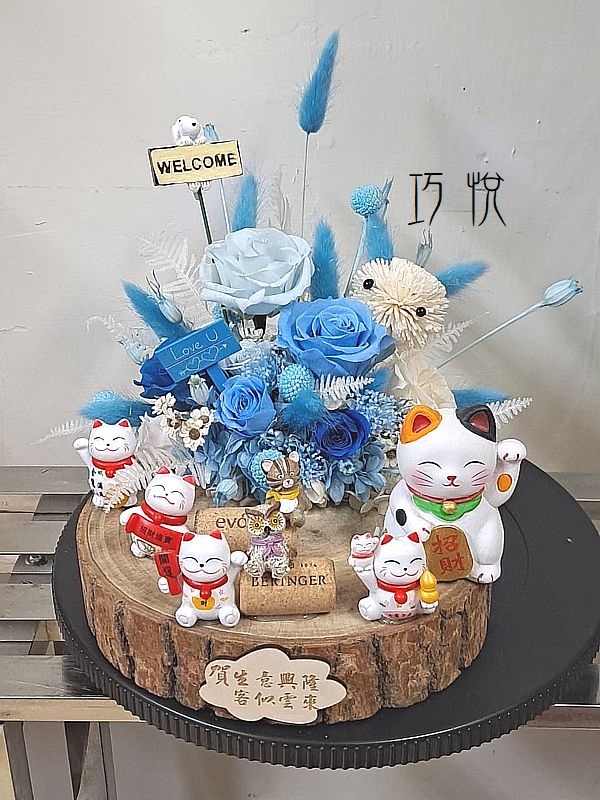 《靜謐藍調》樟木永生名片座× 招財貓祝福