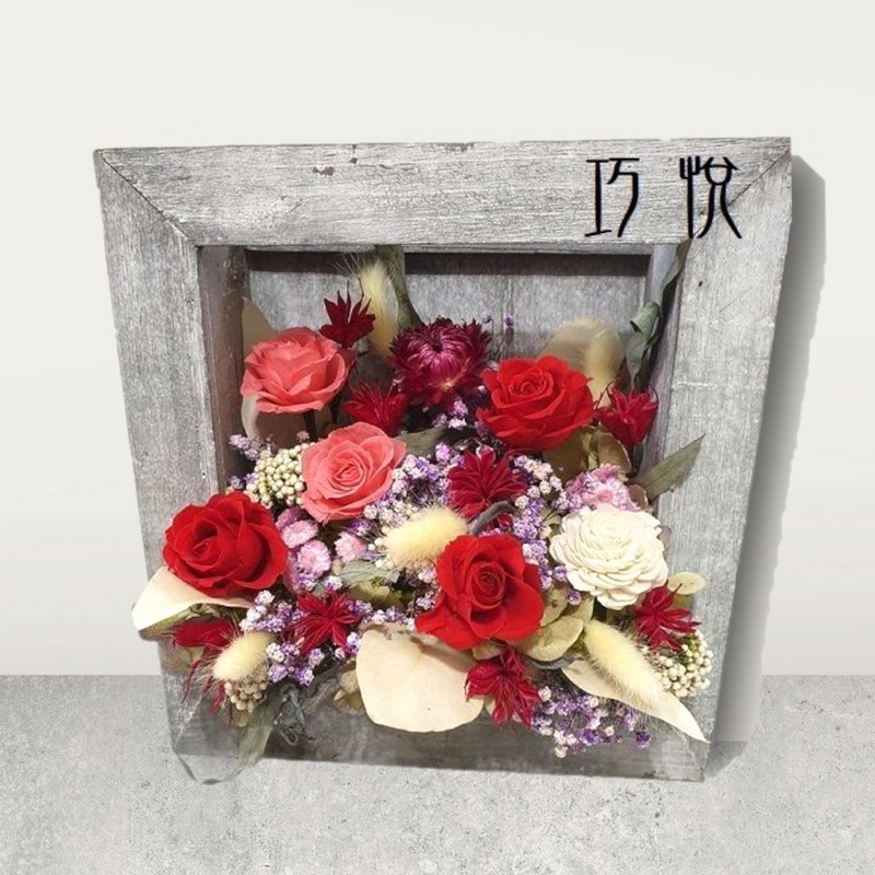 《紅韻時光》木框立體乾燥花藝|紅系設計 × 手工相框擺飾