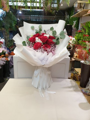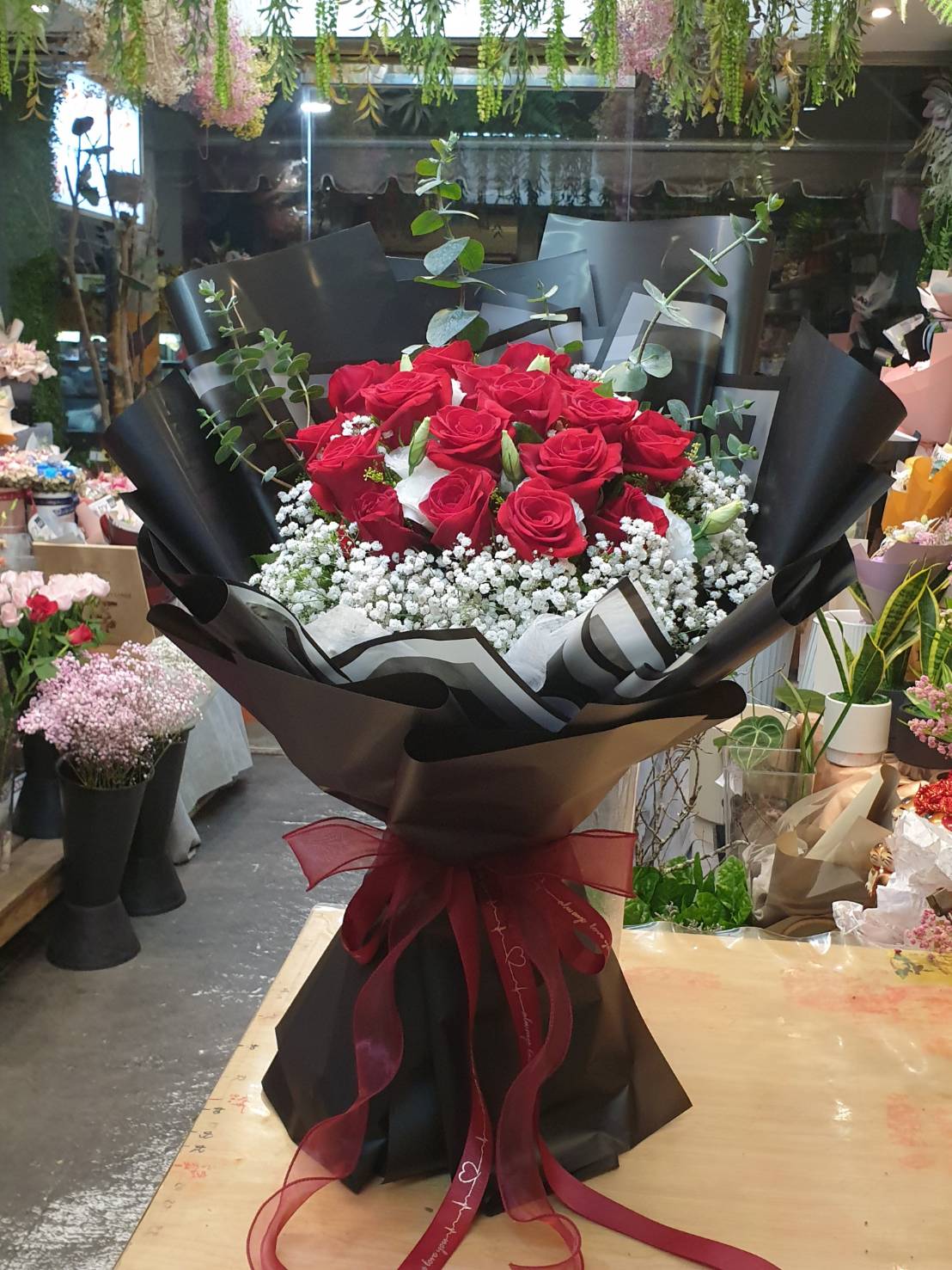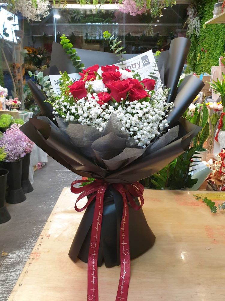 16~20紅玫瑰花束+白桔梗+滿天星