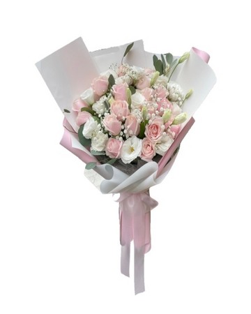【花材內容】: 粉玫瑰/桔梗/尤加利葉/滿天星 【注意事項】: 鮮花花材會依季節性變動,或是花材品質欠佳,若遇臨時狀況發生,請允許花藝設計師以其他色系或相同的花材做調整。 【聯絡我們】: 若有任何問題,歡迎加LINE討論!ID:yalia 也歡迎來電洽詢(02) 2705-2290