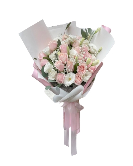 【花材內容】: 粉玫瑰/滿天星/桔梗/尤加利葉 【注意事項】: 鮮花花材會依季節性變動,或是花材品質欠佳,若遇臨時狀況發生,請允許花藝設計師以其他色系或相同的花材做調整。 【聯絡我們】: 若有任何問題,歡迎加LINE討論!ID:yalia 也歡迎來電洽詢(02) 2705-2290