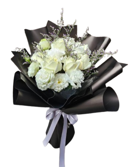 【花材內容】: 白玫瑰/滿天星 【注意事項】: 鮮花花材會依季節性變動,或是花材品質欠佳,若遇臨時狀況發生,請允許花藝設計師以其他色系或相同的花材做調整。 【聯絡我們】: 若有任何問題,歡迎加LINE討論!ID:yalia 也歡迎來電洽詢(02) 2705-2290