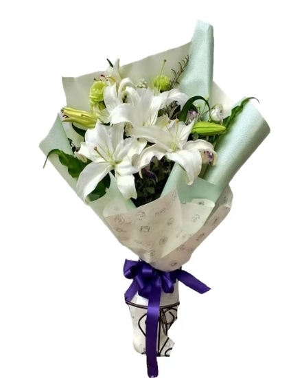 【花材內容】: 百合/桔梗/卡斯比亞 【注意事項】: 鮮花花材會依季節性變動,或是花材品質欠佳,若遇臨時狀況發生,請允許花藝設計師以其他色系或相同的花材做調整。 【聯絡我們】: 若有任何問題,歡迎加LINE討論!ID:yalia 也歡迎來電洽詢(02) 2705-2290