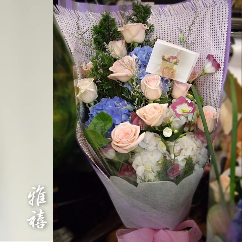 粉玫瑰+紫陽花+粉桔梗70cm x 30cm