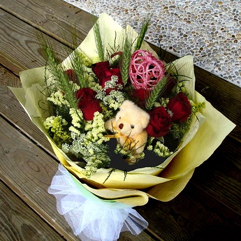 紅玫瑰+星辰花+小麥+蕾絲花+盧筍30cm x 20cm