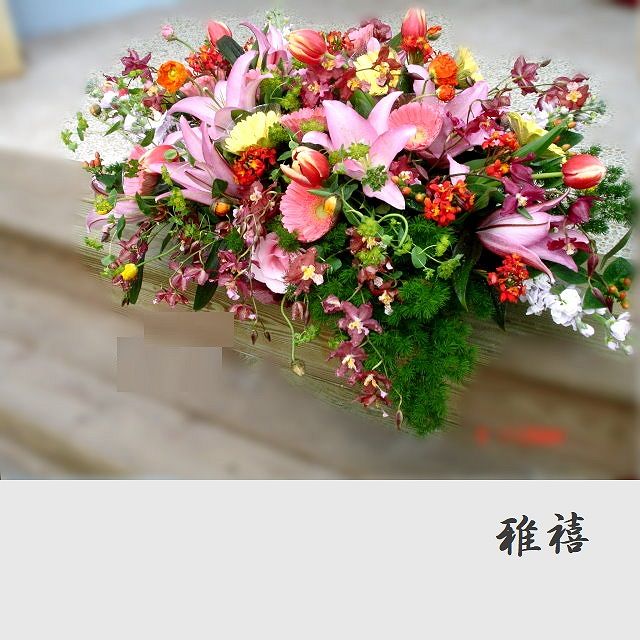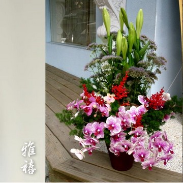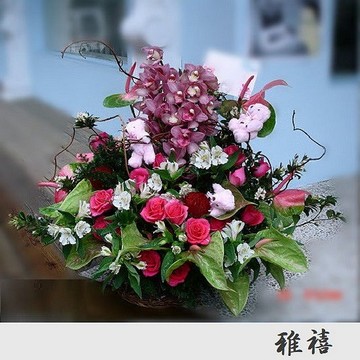 粉百合+粉玫瑰+蘭花+鬱金香+太陽花+紫羅蘭20cm x 40cm